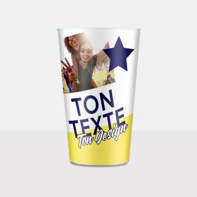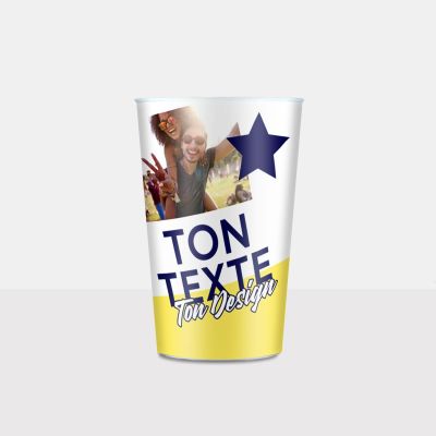 Que ce soit un slogan, un logo, une photo ou un autre motif de votre choix, créez votre gobelet exactement comme vous le souhaitez et prêtez une note originale à votre évènement. Choisissez la taille idéale pour votre évènement parmi les quatre proposées et déterminez la quantité qu’il vous faut. Créez votre gobelet en plastique, laissez nos spécialistes l’imprimer pour vous et préservez notre environnement grâce aux matériaux recyclables.
